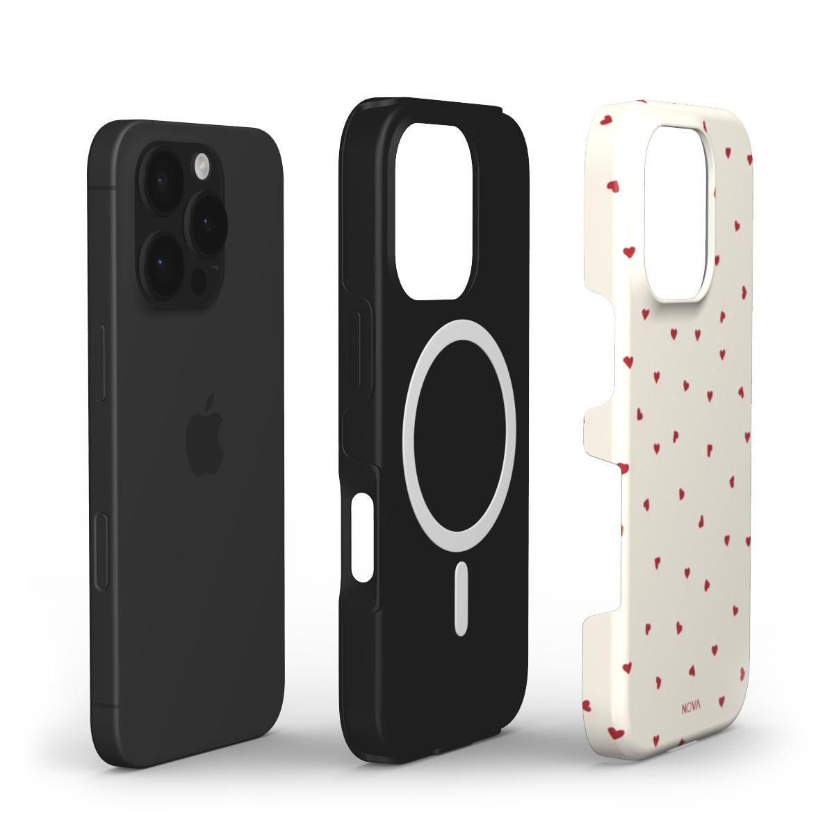 Designkenmerken: Een speels en romantisch ontwerp met een zachte crème achtergrond als basis, bezaaid met een patroon van fijne, helderrode hartjes. De minimalistische opzet zorgt voor een frisse en luchtige uitstraling, terwijl de herhaling van kleine hartjes warmte en charme toevoegt. Dit design balanceert subtiele elegantie met een vleugje liefdevolle speelsheid – ideaal voor wie houdt van een lieflijke stijl met een moderne twist.